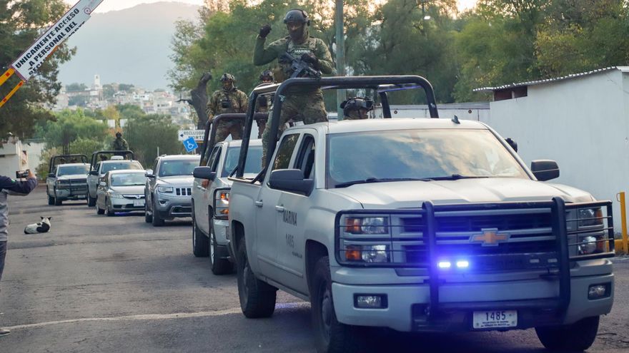 Fotografía del convoy que trasladó al extitular de la extinta Procuraduría General de la República (PGR) Jesús Murillo Karam. / EFE