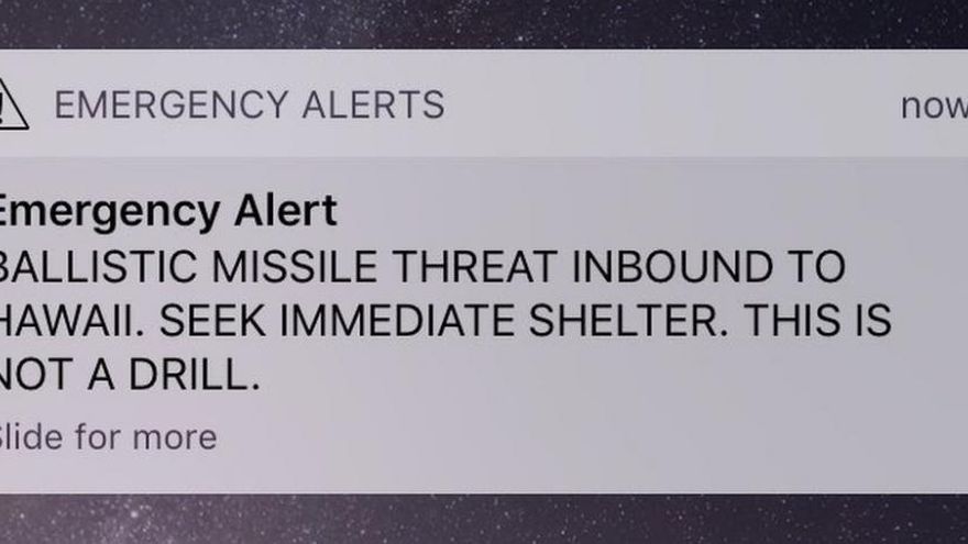 Los ciudadanos de Hawái recibieron una alerta en sus teléfonos móviles que indicaba que un misil balístico se dirigía hacia ese estado estadounidense de forma inminente, una alarma que resultó ser falsa, según aseguraron más tarde las autoridades estatales.
