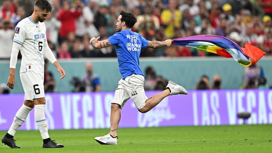 El ciudadano italiano que atravesó el terreno con una bandera arcoíris y una camiseta de apoyo a las mujeres iraníes y a Ucrania, el lunes durante el partido Portugal-Uruguay del Mundial-2022, fue rápidamente liberado "sin consecuencias", anunció este martes el Ministerio italiano de Asuntos Exteriores.