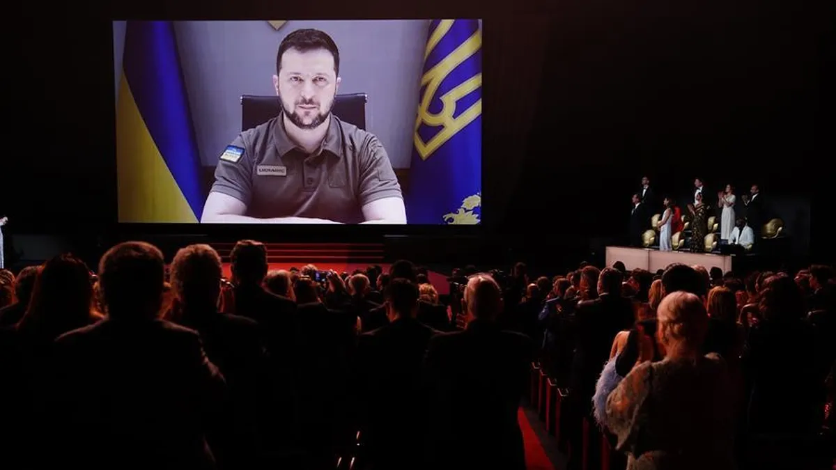 "Necesitamos a un nuevo (Charlie) Chaplin que demuestre que el cine no está mudo", declaró Zelenski ante una audiencia de estrellas del séptimo arte.