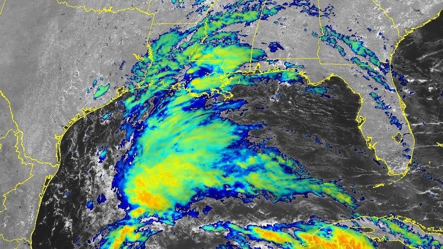 “Las observaciones de satélite y de superficie indican que una amplia área de baja presión se encuentra sobre la Bahía de Campeche con vientos de 35-40 mph ocurriendo en un área bien al noreste del centro sobre el sur del Golfo de México”, explicó la NWS.