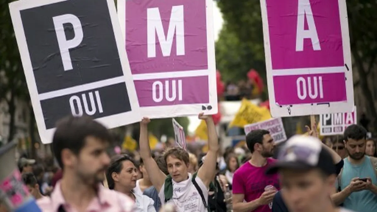 Según la última encuesta del instituto en septiembre, una gran mayoría de franceses apoya la apertura de la PMA a las mujeres solteras (68%) y a las lesbianas (65%), un "nivel récord", afirma.