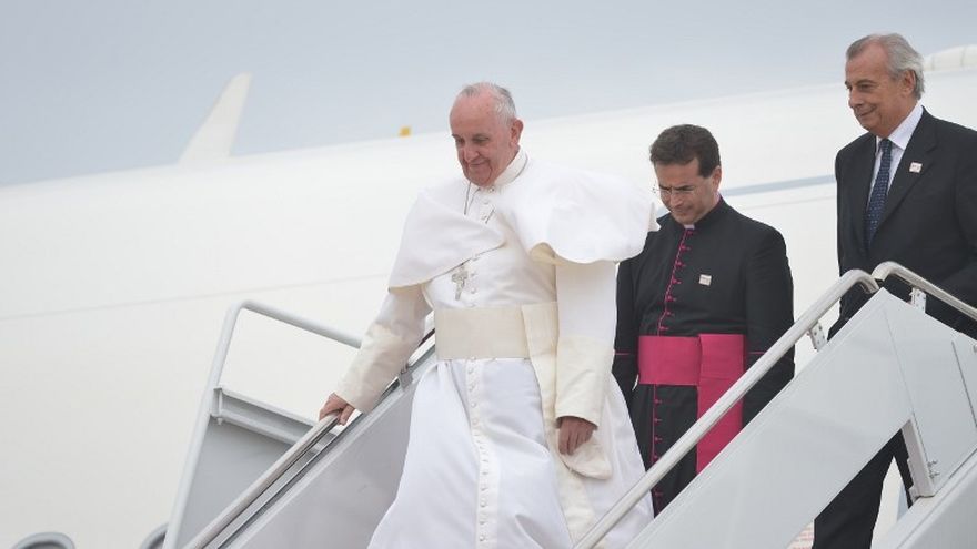 El avión de Alitalia aterrizó a las 15H50 locales (19h50 GMT) en la base aérea Andrews, en la periferia de la capital estadounidense, proveniente de Santiago de Cuba. Por la ventanilla del avión eran exhibidas las banderas del Vaticano y de Estados Unidos.