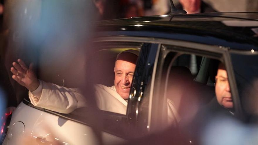 Media horas antes, Francisco abandonó la Nunciatura del Vaticano en la capital mexicana, donde duerme durante la visita, iniciada el viernes y que culminará el miércoles, para dirigirse en un Fiat 500L de color blanco.
