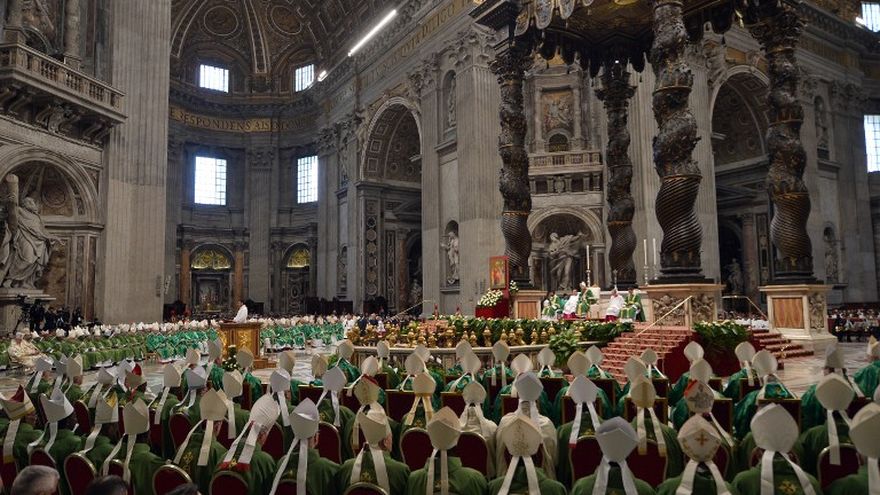 En su homilía, pronunciada durante la misa solemne en San Pedro ante 400 cardenales y obispos de todo el mundo con ocasión de segundo sínodo de la familia en un año, el papa argentino reconoció que la Iglesia debe defender los valores tradicionales en un "contexto social y matrimonial bastante difícil", recalcó.