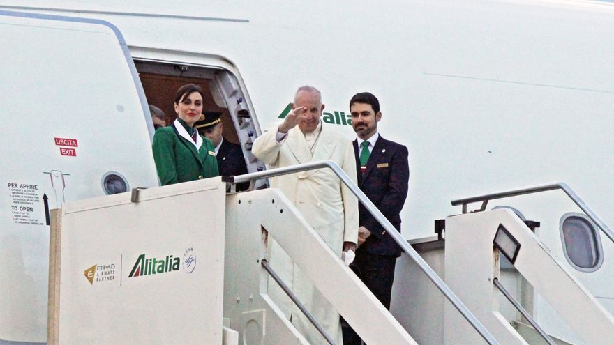 Posteriormente, el papa volverá a embarcarse en el avión de la compañía Alitalia para aterrizar horas más tarde en Ciudad de México, donde será recibido por su presidente, Enrique Peña Nieto.