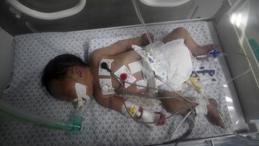 Por ahora, el bebé prematuro es objeto de una atención muy particular de los médicos de hospital europeo de Jan Yunes, a donde fue trasladada, y respira gracias a una máscara de oxígeno. "Esta niña está en un estado crítico y requiere estar constantemente conectada al respirador artificial, pues fue privada de oxígeno entre la muerte de su madre y su nacimiento", dijo Abdel Karim Al Bawab, jefe de la maternidad. Su estado "es estable, pero el bebé tendrá que estar aquí al menos tres semanas", aseguró.