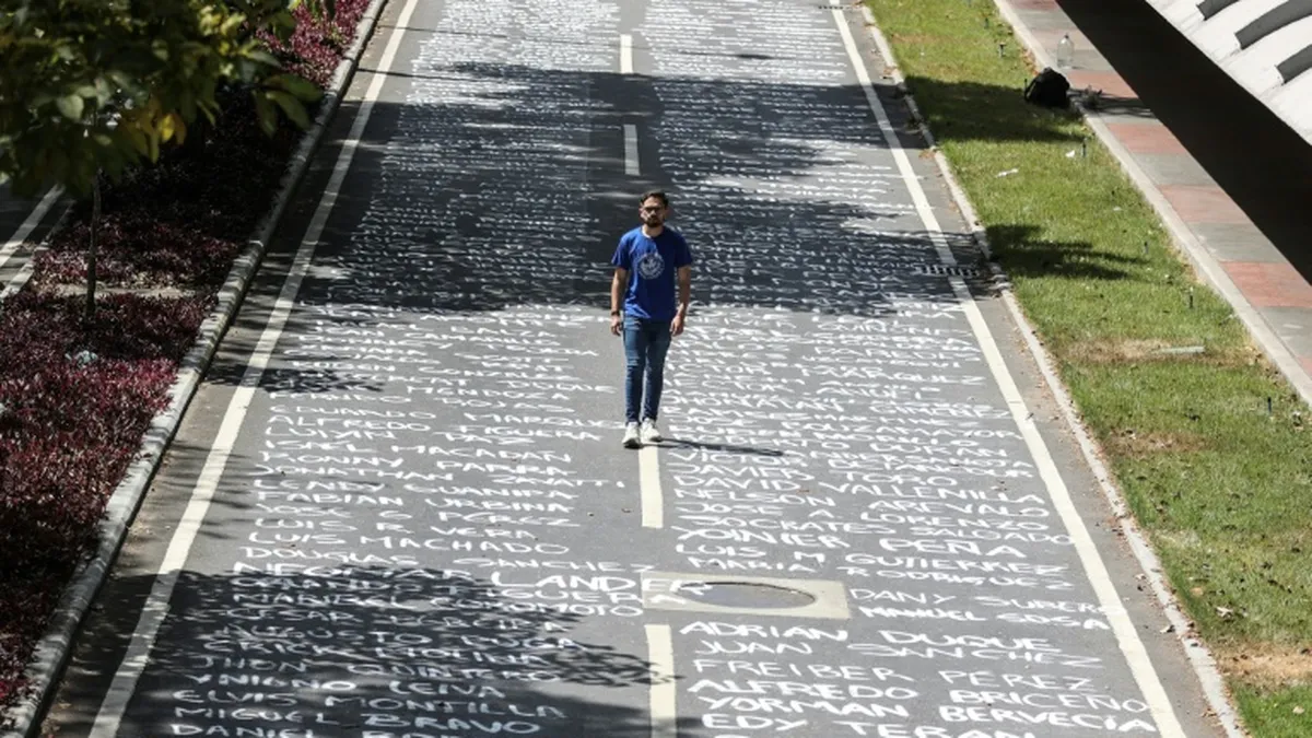 Entre los 320 nombres desplegados en el asfalto de la Universidad Central de Venezuela (UCV), un conteo de la oenegé Foro Penal, destacan el de Génesis Carmona y Orlando Figuera. Ella, opositora de 22 años fallecida en una manifestación en 2014; él, de 21 años, murió en 2017, según el gobierno, linchado tras ser señalado de chavista.