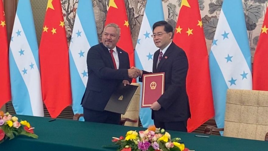 "Hoy damos un paso histórico en ese proceso de afianzar y fortalecer nuestras relaciones internacionales, particularmente con el pueblo y gobierno chino", declaró el ministro hondureño de Relaciones Exteriores, Enrique Reina, tras firmar una declaración conjunta con su par Qin Gang.
