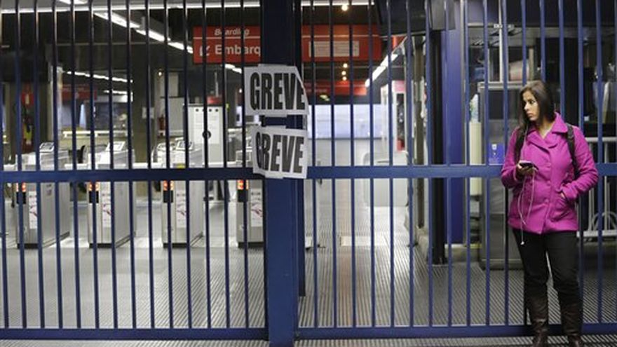 La compañía que opera el metro en la ciudad brasileña donde se jugará el partido inaugural de la Copa del Mundo la semana próxima dijo este sábado que las cinco líneas están funcionando, sea normal o parcialmente, en la tercera jornada de un paro por aumento de salarios.