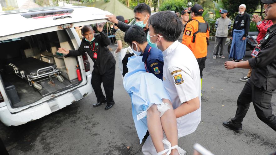 Agentes de los servicios de emergencias sacaron de debajo de los escombros a habitantes de Cianjur.