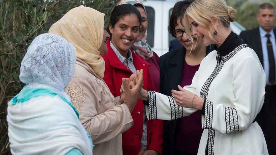Ivanka Trump, hija y asesora del presidente de Estados Unidos, Donald Trump, quien efectúa una visita a Marruecos, se reunió hoy con varias mujeres rurales que lograron mejorar su condición económica al acceder a la propiedad de tierras agrícolas.