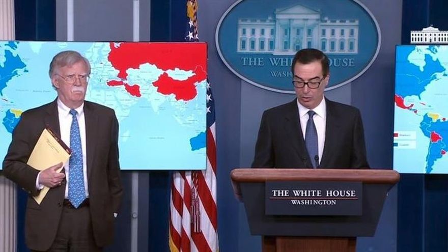 "Llamamos a los militares y fuerzas de seguridad venezolanas a aceptar la transición de poder pacífica, democrática y constitucional", dijo Bolton, que habló junto al secretario del Tesoro de EEUU, Steven Mnuchin, quien detalló las sanciones contra Pdvsa.