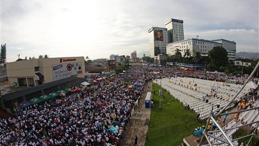 Muchos feligreses acamparon en los alrededores de la plaza la noche anterior y celebraron una vigilia con la participación de sacerdotes y una misa oficiada por el cardenal hondureño Oscar Rodríguez Maradiaga.