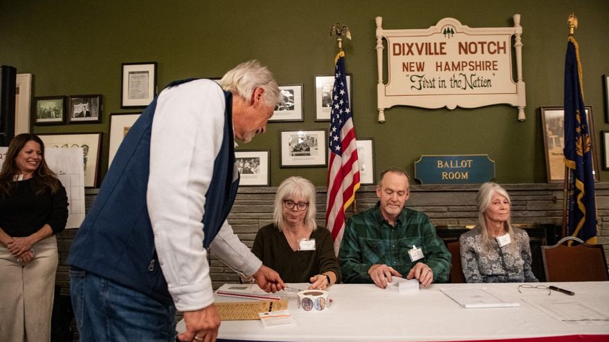 Las leyes de Nuevo Hampshire permiten a los municipios con menos de 100 residentes abrir sus centros de votación a medianoche y cerrarlos cuando se hayan registrado todos los sufragios.