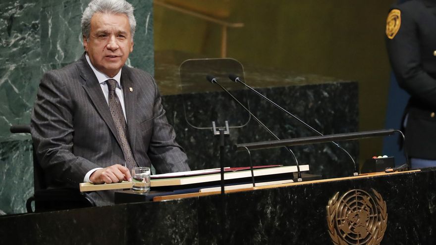El presidente ecuatoriano fue el segundo líder en intervenir hoy en la Asamblea General, debido al retraso del mandatario estadounidense, Donald Trump, cuyo país ocupa tradicionalmente ese lugar.