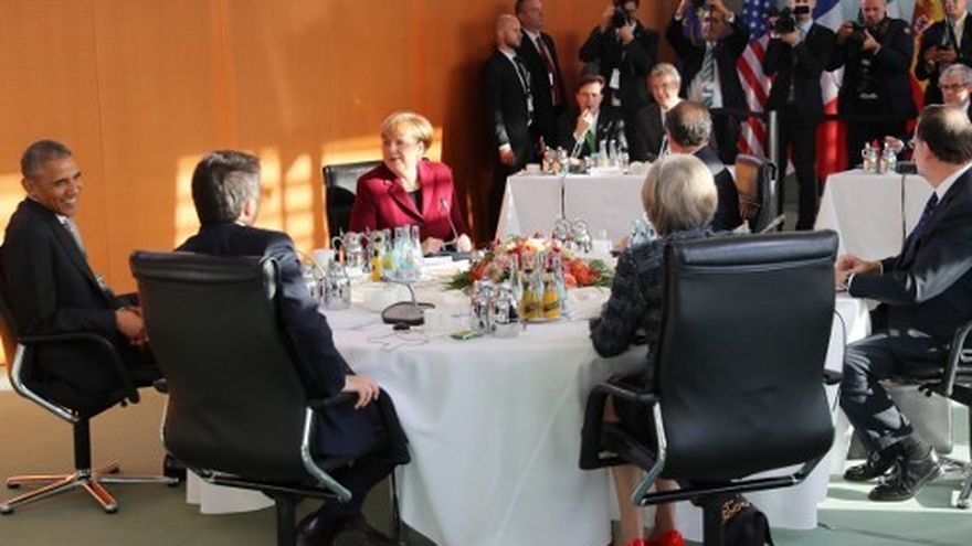 Preocupados por el futuro de las relaciones con Estados Unidos y de su compromiso con la OTAN, Angela Merkel, Theresa May, Mariano Rajoy, Matteo Renzi y François Hollande se reunieron con Obama por última vez antes de que abandone el cargo, el próximo 20 de enero.