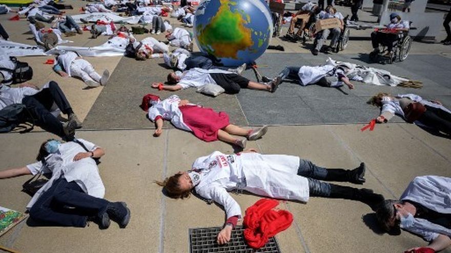 Unos doscientos trabajadores sanitarios desfilaron este sábado frente a la sede de la Organización Mundial de la Salud (OMS), en Ginebra, con el fin de exigir que las autoridades de los países miembros reconozcan y actúen para combatir los riesgos del cambio climático.