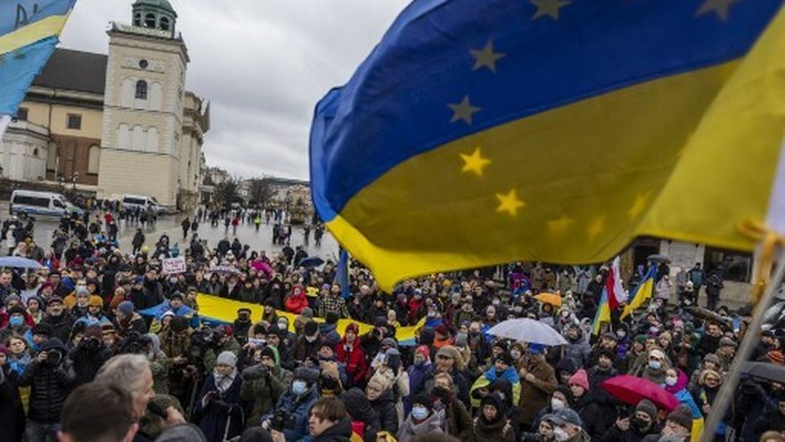 Varsovia, Polonia/Varios centenares de personas participaron el domingo en Varsovia en una manifestación por la paz en Ucrania y contra "una posible nueva agresión rusa", mientras se celebró una concentración similar en Madrid.