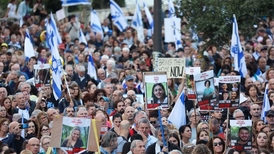 "Tráiganlos a casa ahora", clamaba la multitud, convocada por los familiares de los rehenes.