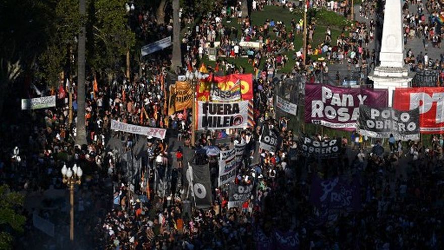 Organismos de derechos humanos, referentes opositores, sindicatos y jubilados, pero también artistas como las cantantes María Becerra y Lali Espósito -quien le ha dedicado una reciente canción paródica a Milei-, participaban de la que posiblemente sea la marcha más multitudinaria contra el Gobierno desde la que se llevó a cabo en abril por el financiamiento de la universidad pública.