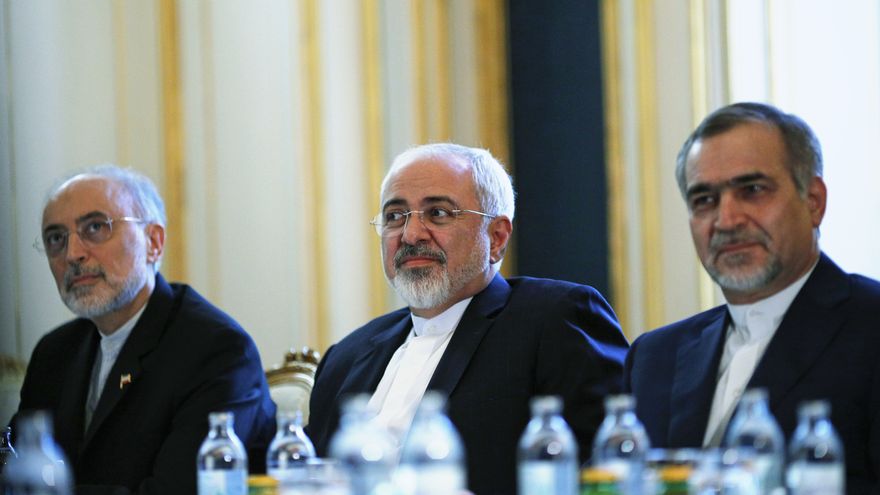 El ministro del Exterior de Irán, Mohammad Javad Zarif (al centro); el director de la Organización de la Energía Atómica de Irán, Ali Akbar Salehi (izquierda); y Hossein Fereydoon, hermano y asistente cercano del presidente iraní / AP
