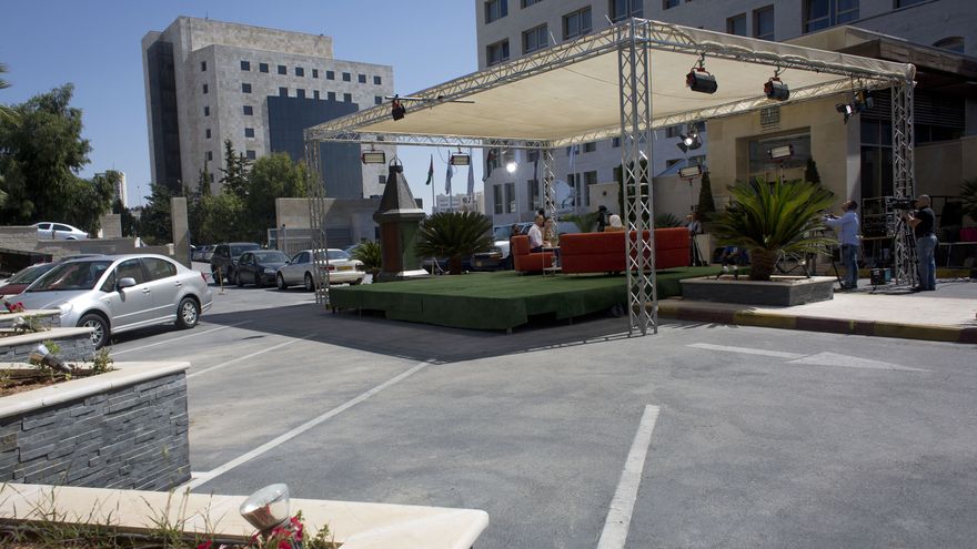 Desde la clausura, el canal ha levantado un plató improvisado en el estacionamiento de un hotel en una parte palestina de Cisjordania, desde donde emiten a Israel y al mundo árabe. Sus conductores se toman el cambio con humor.
