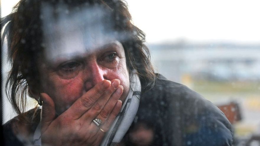"Espero a mis padres, hablé con ellos por teléfono cuando ya estaban en el avión, más tarde escuché las noticias", cuenta Ella Smirnova, de 25 años, en estado de shock en el aeropuerto Pulkovo de San Petersburgo.