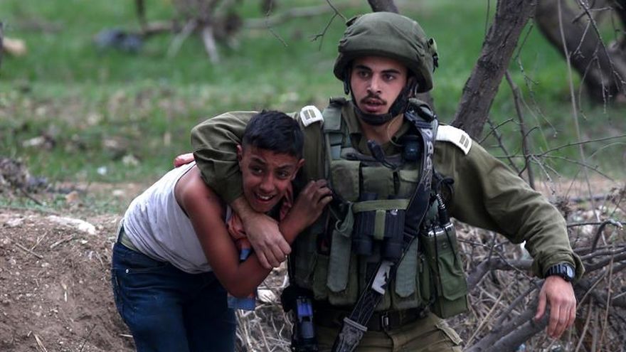 Al llegar al puesto de control, los palestinos lanzaron piedras y cócteles molotov a los militares, que respondieron con gas lacrimógeno y balas de goma contra los manifestantes, en su mayoría jóvenes y estudiantes universitarios que enarbolaban banderas palestinas y protestaban contra Trump, según pudo constatar Efe.