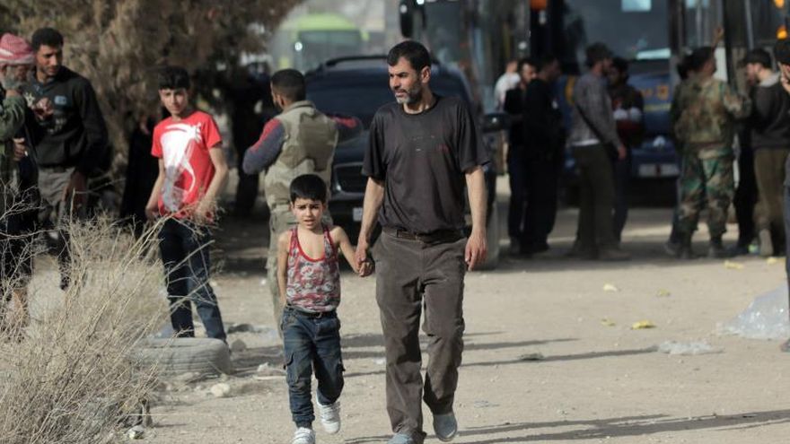 Esos civiles y combatientes están siendo trasladados a la provincia septentrional de Idleb, controlada casi totalmente por la exfilial siria de Al Qaeda y otros grupos, como estipulan los pactos logrados entre las partes.