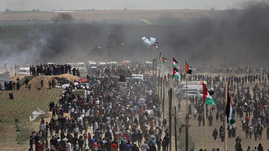La Gran Marcha del Retorno, planeada por sectores sociales y políticos de Gaza, congregó el primer día a 30.000 personas, la semana pasada a 20.000 y hoy a 10.000, y se extenderá hasta el 15 de mayo (Día de la Nakba o catástrofe, como denominan los palestinos a la fecha fundacional del Estado de Israel, cuyo 70 aniversario se cumple este año), cuando está prevista la mayor concentración.