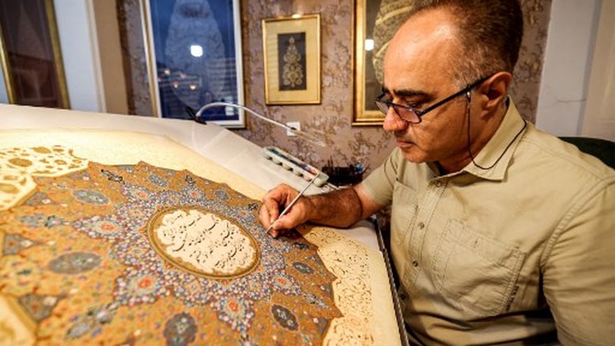 Aghamiri, de 51 años, es considerado como uno de los maestros iraníes del llamado arte de la iluminación, una técnica decorativa que se practica en las páginas de manuscritos y textos caligrafiados. Hace más de tres décadas que se dedica a ello.