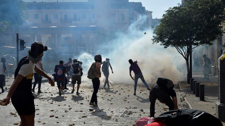 Los enfrentamientos se produjeron después de una concentración frente al puerto, origen de la masiva explosión de cerca de 3.000 toneladas de nitrato de amonio de hace una semana que dejó 171 fallecidos y más de 6.000 heridos, y de una marcha con velas por el centro de la capital del Líbano.