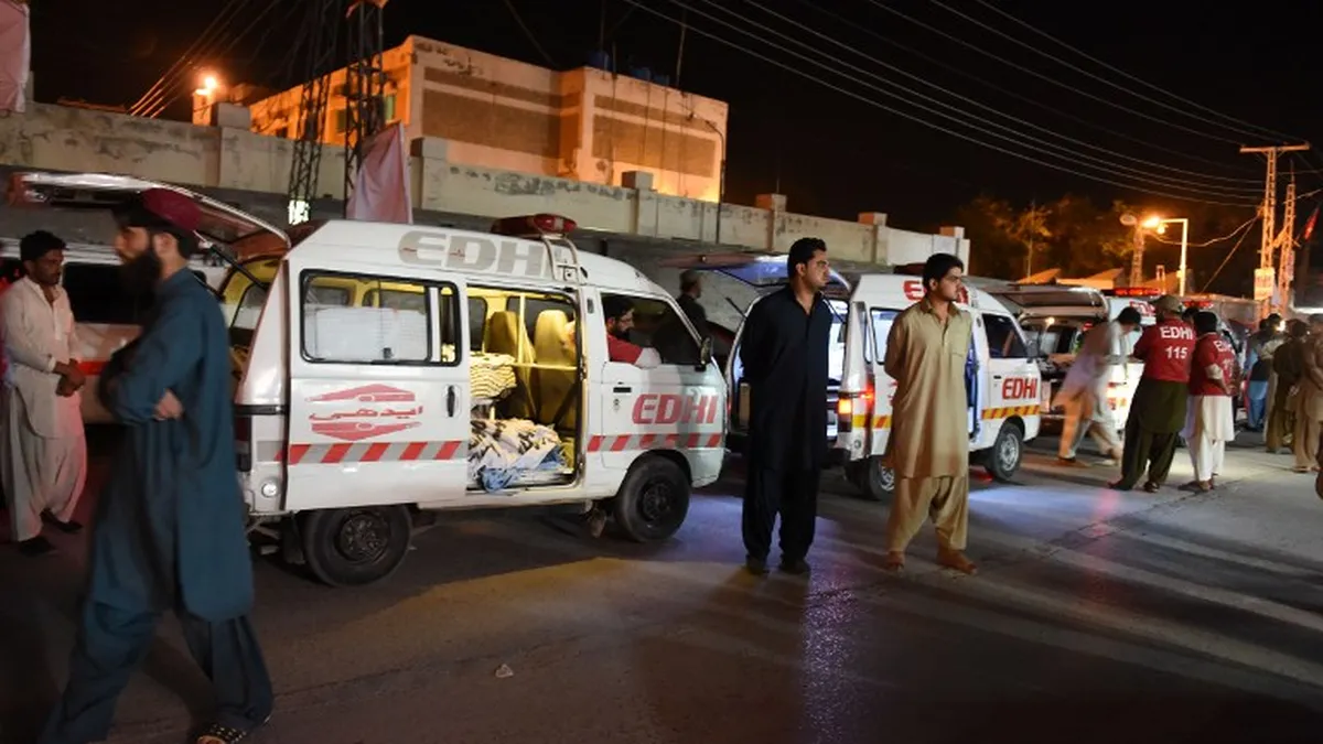 Imagen de ambulancia en Pakistan, tras disparos a autobuses / AFP