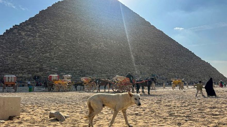 Bajo el abrasador sol egipcio, una multitud de turistas contemplan las pirámides de Guiza. Pero algunos de ellos fijan sus miradas en una nueva atracción: los perros callejeros que habitan en estas maravillas de la Antigüedad.