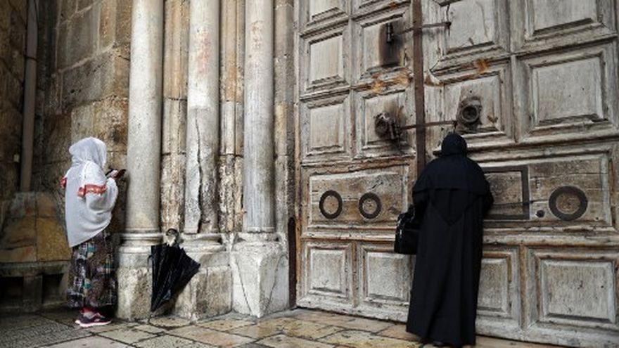 Los jefes de las Iglesias greco-ortodoxa, armenia y católica, que comparten la custodia del sitio, adoptaron el domingo la excepcional decisión de cerrar las puertas de la iglesia construida según la tradición cristiana en el lugar de la crucifixión y donde se encuentra la tumba de Cristo.