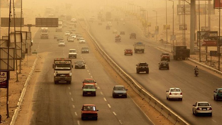 Vehículos circulan por una autopista durante una tormenta de arena hoy en El Cairo. La tormenta de arena afecta a Líbano, Siria, Jordania e Israel / EFE