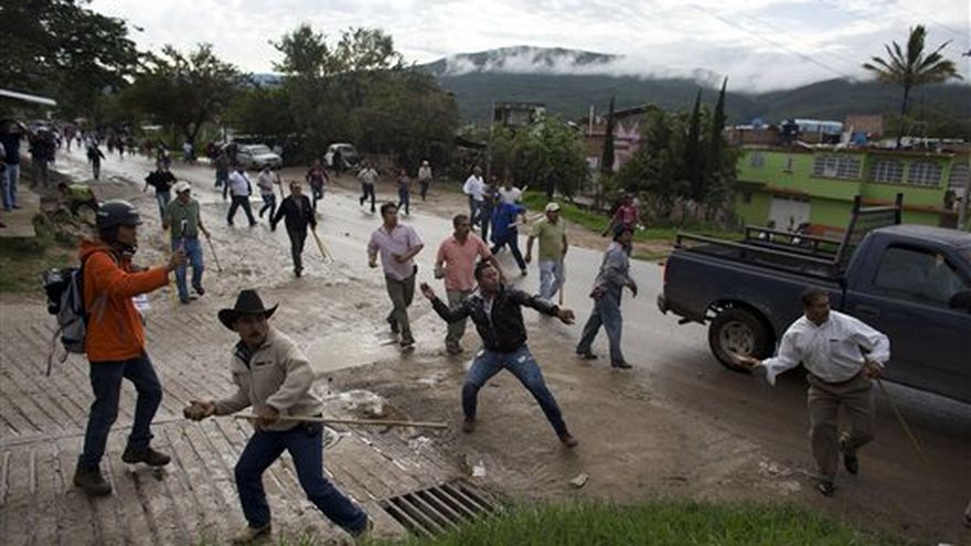 Los enfrentamientos comenzaron, sin embargo, poco después entre los manifestantes que llamaban al boicot y en torno a un millar de civiles armados con palos y piedras se enfrentaron a estudiantes, maestros y policías comunitarios en un intento dijeron de defender su derecho al voto.