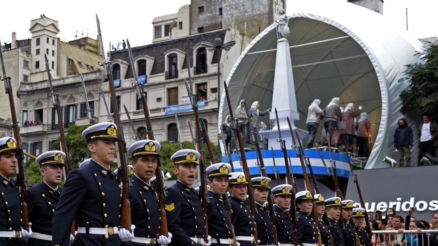 El último desfile que involucró a miles de militares activos en Buenos Aires un 9 de julio tuvo lugar en 2019 bajo la presidencia del derechista Mauricio Macri, quien recuperó la tradición durante su mandato (2015-2019) excepto en 2018, cuando el evento se suspendió en el marco de una crisis de la deuda.