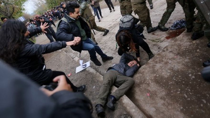 Cerca de 5,000 chilenos participaron este domingo en una tradicional marcha en Santiago que recuerda a las víctimas de la dictadura de Augusto Pinochet (1973-1990) y que concluyó con violentos enfrentamientos entre encapuchados y policías.