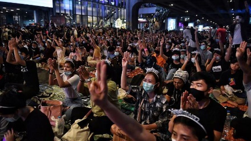 Los manifestantes, al igual que los estudiantes, piden una reforma de la poderosa monarquía y la dimisión del primer ministro, Prayut Chan O Cha, que llegó al poder tras un golpe de Estado de 2014.