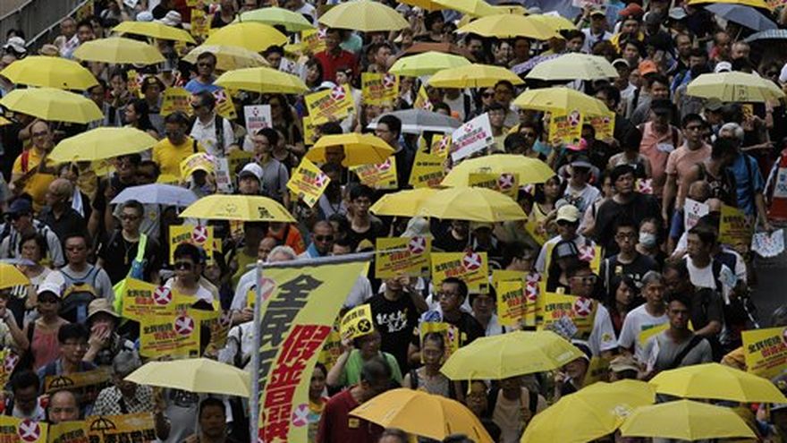 Los activistas prodemocracia, que el pasado otoño llamaron la atención del mundo ocupando partes de la ciudad durante 11 semanas para pedir más libertad electoral, rechazaron la propuesta, que tachan de "farsa de democracia", y pidieron un sufragio universal auténtico. El domingo llegaron a marchar con sombrillas y otros objetos amarillos, el color de su movimiento.