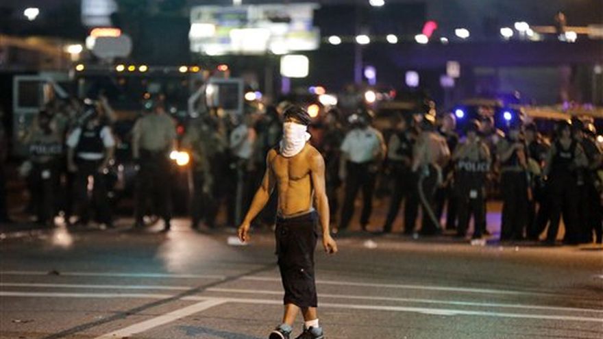 Los enfrentamientos se produjeron al final de una jornada en la que patólogo contratado por la familia de Michael Brown, dijo que el cuerpo del adolescente desarmado presenta un orificio de bala en el brazo derecho que pudo haber ocurrido al levantar las manos o al estar de espaldas de quien le disparó.