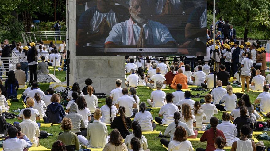 "Es maravilloso ver al mundo entero reunirse de nuevo por el yoga", comentó el primer ministro indio.