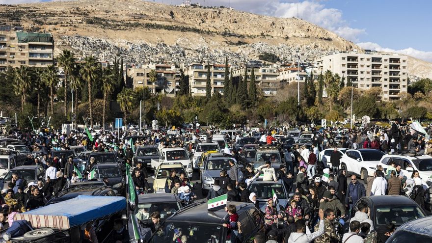 Miles de hombres, mujeres y niños se congregaron el viernes en el centro de Damasco y en otras ciudades como Alepo, en el norte, y Sueida, en el sur, en un ambiente festivo y con la bandera de tres estrellas, símbolo del movimiento prodemocrático de 2011, adoptado por las nuevas autoridades.