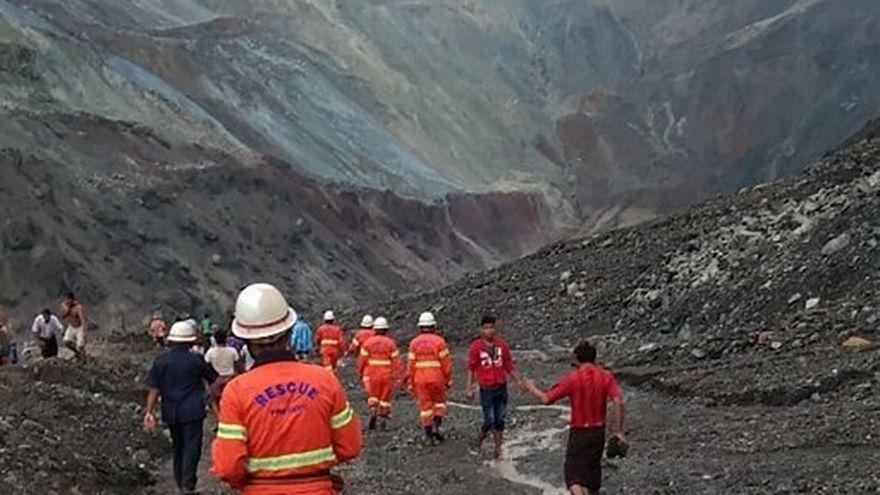 La tragedia tuvo lugar en torno a las 08.00 hora local (01.30 GMT) cuando, en medio de una lluvia torrencial, una avalancha sepultó a un grupo de mineros, informó el Departamento de Bomberos birmano en su página de Facebook.
