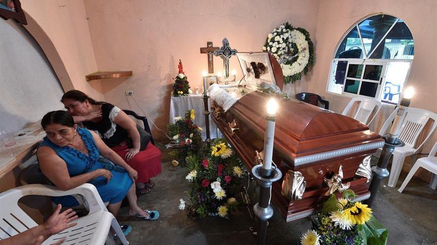 Inocente Hernández rompe en llanto y se aferra a un ataúd vacío con la imagen de la virgen de Guadalupe en el funeral de su esposa Marina, quien falleció por un fármaco contaminado por una bacteria en un hospital de Pemex del suroriental estado de Tabasco, un suceso que suma seis fallecidos y una cincuentena de afectados.