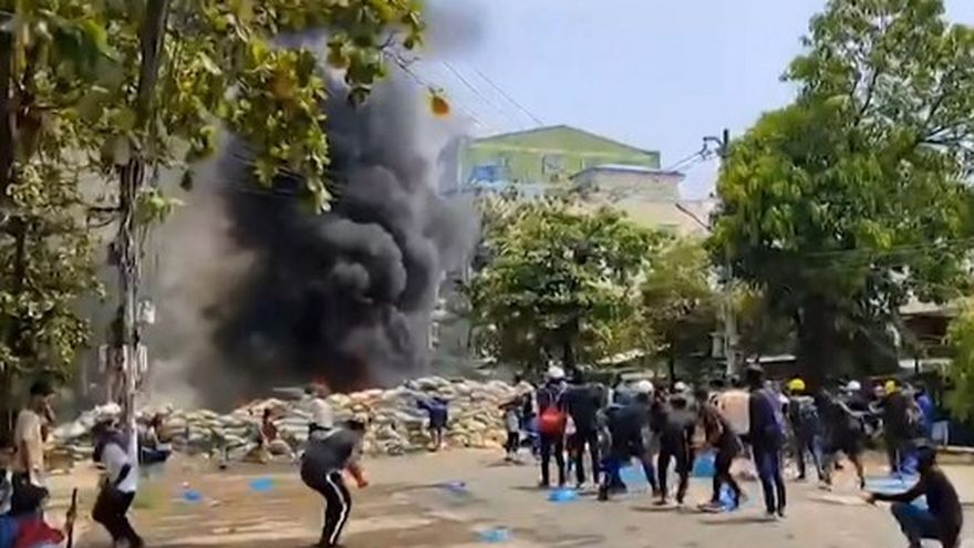 A media jornada, la violencia estalló en todo el país. En Rangún, columnas de humo se elevaban sobre la antigua capital del país, que se ha convertido en foco de disturbios en las últimas semanas.