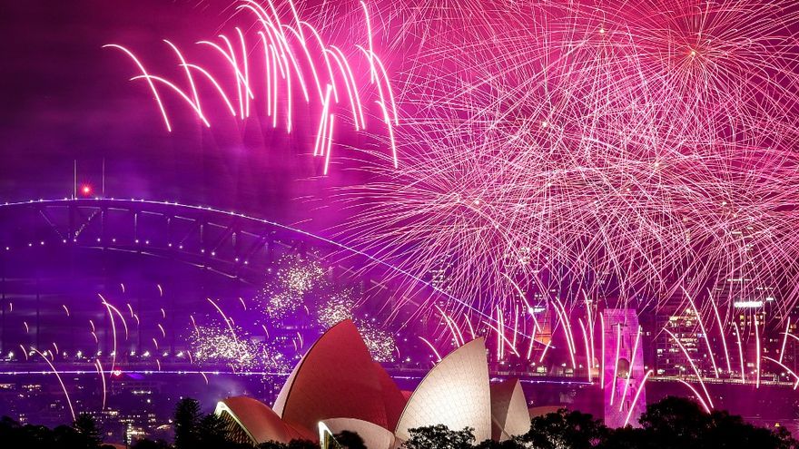 En Sídney, la autoproclamada "capital mundial del Año Nuevo", se espera que más de un millón de asistentes llenen la costa de la ciudad. Incluso antes del anochecer, decenas de miles de personas se reunieron en puntos estratégicos alrededor del icónico Harbour Bridge de la ciudad, desafiando un clima inusualmente húmedo.
