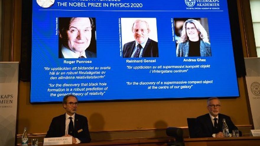 La mitad del premio recayó en Penrose, de 89 años, por demostrar "que la formación de un agujero negro es una predicción sólida de la teoría de la relatividad general" y la otra mitad del premio se la reparten Genzel, de 68, y Ghez, de 55, por descubrir "un objeto compacto y extremadamente pesado en el centro de nuestra galaxia", explicó el jurado.